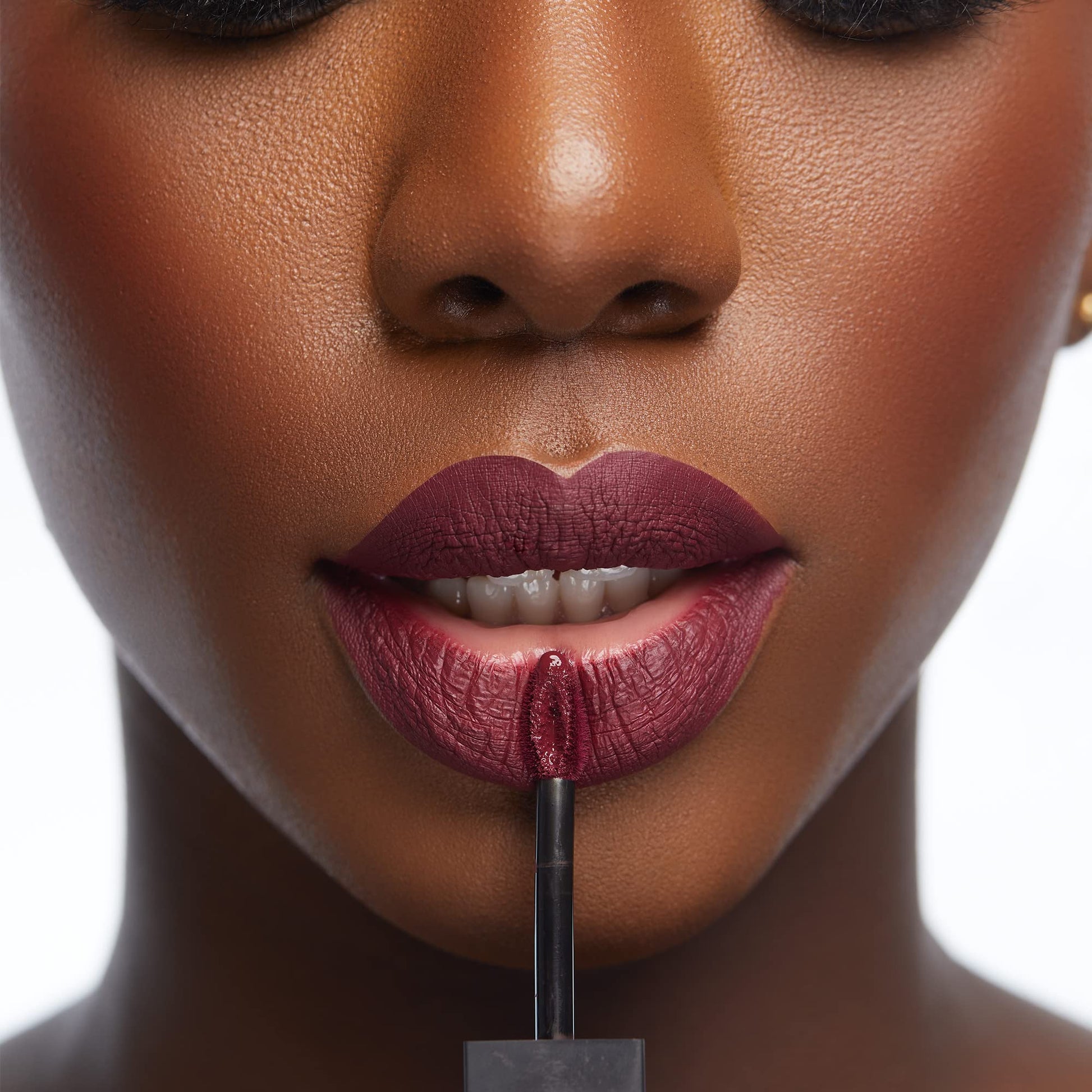 - Use 2-3 light strokes on top and bottom lip for a flawless finish and allow to set untouched for at least 5 minutes after application.